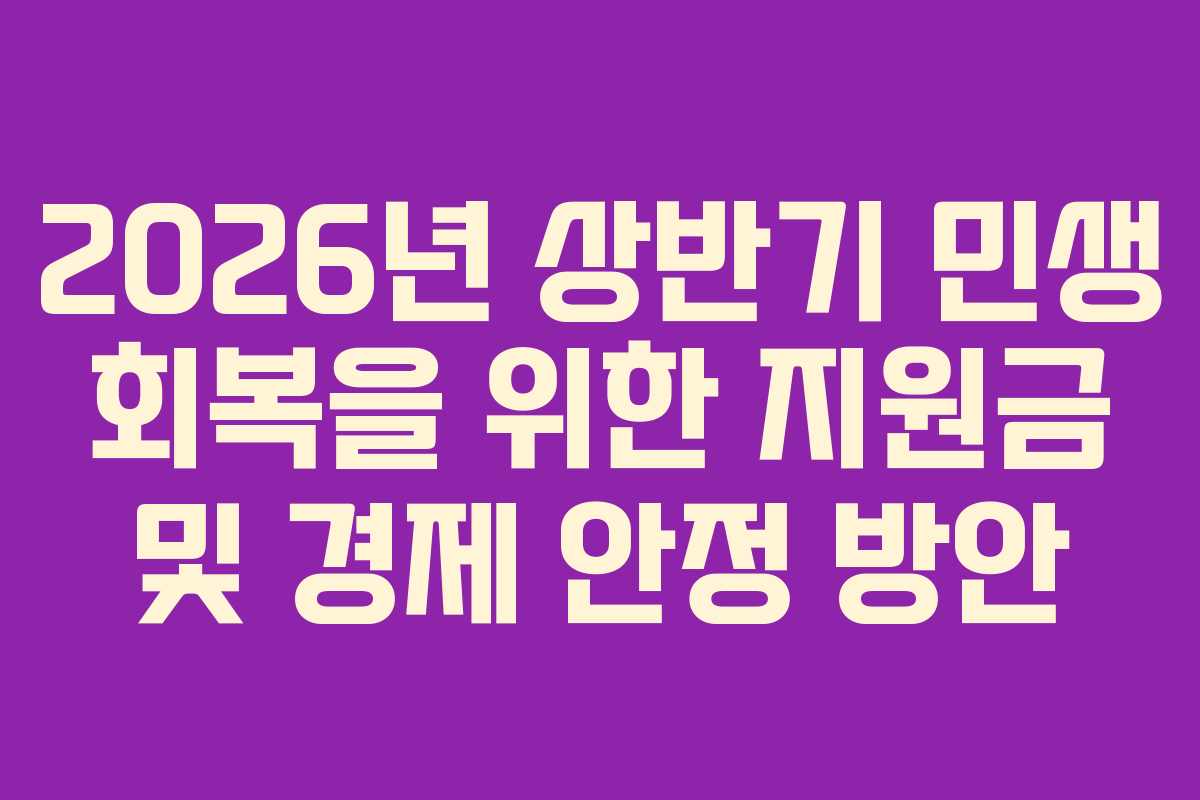 2026년 상반기 민생 회복을 위한 지원금 및 경제 안정 방안