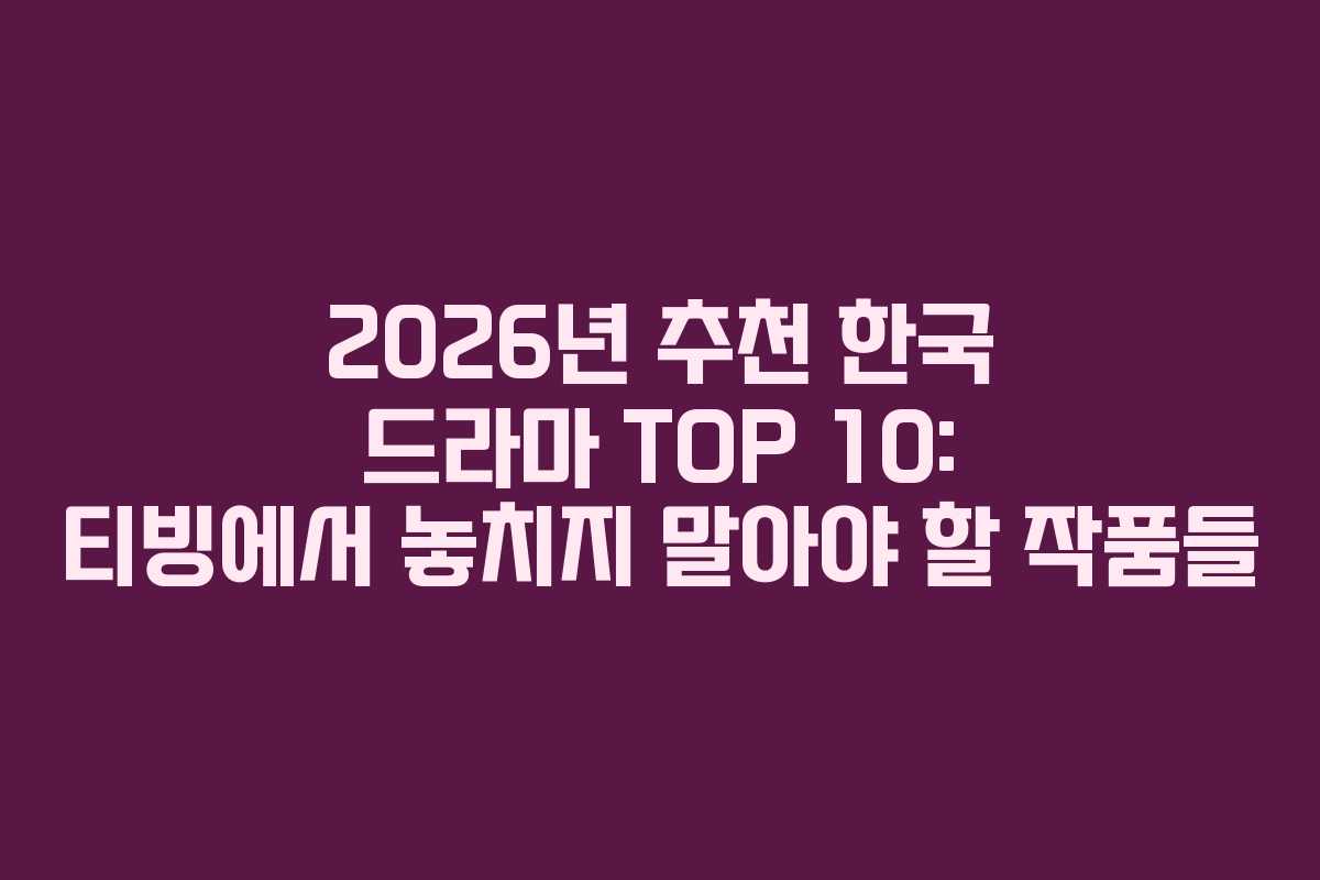 2026년 현재 상황에 맞춘 한국 드라마 추천