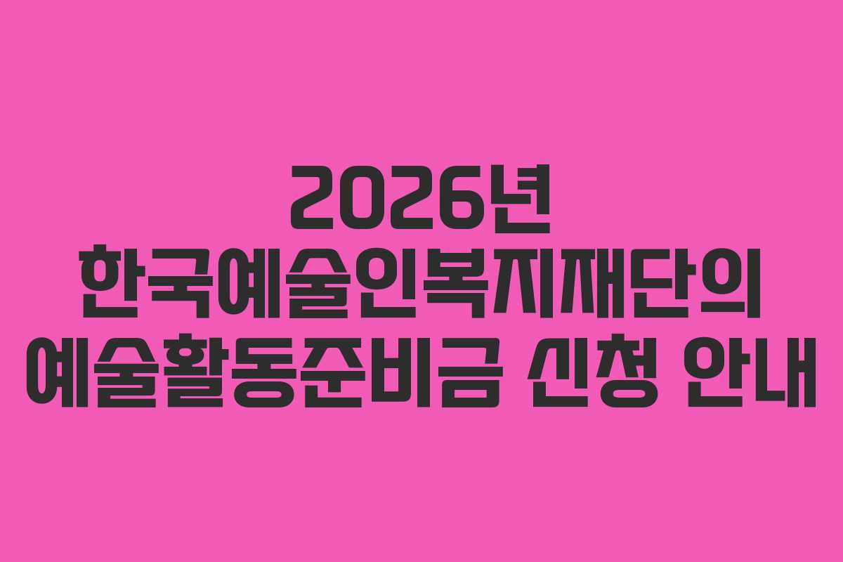 2026년 한국예술인복지재단의 예술활동준비금 신청 안내