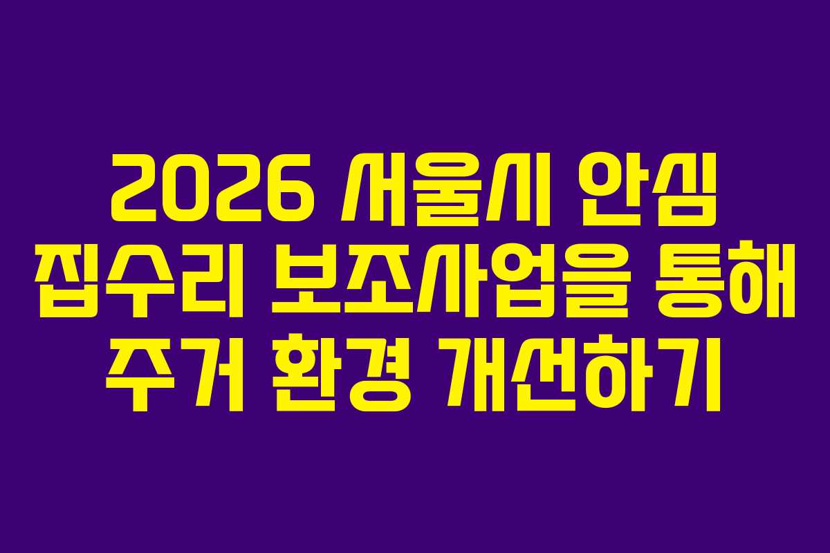 2026 서울시 안심 집수리 보조사업을 통해 주거 환경 개선하기
