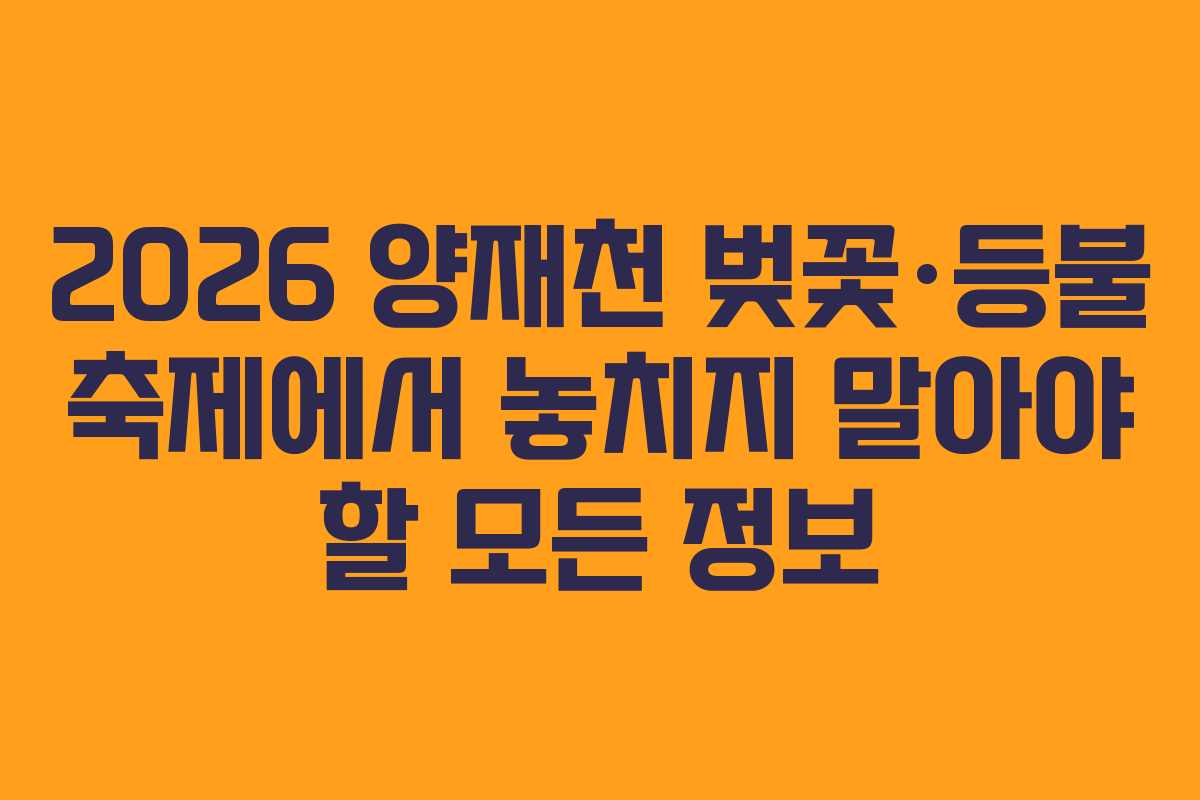 양재천 벚꽃·등불 축제는 서울 도심에서 자연과 벚꽃, 빛을 함께 즐길 수 있는 특별한 행사입니다. 사랑하는 사람들과 함께 양재천 벚꽃 산책길을 걸으며 낭만적인 봄밤을 보내는 것을 추천합니다. 2026년 봄, 여러분의 특별한 기억을 양재천에서 만들어보세요.