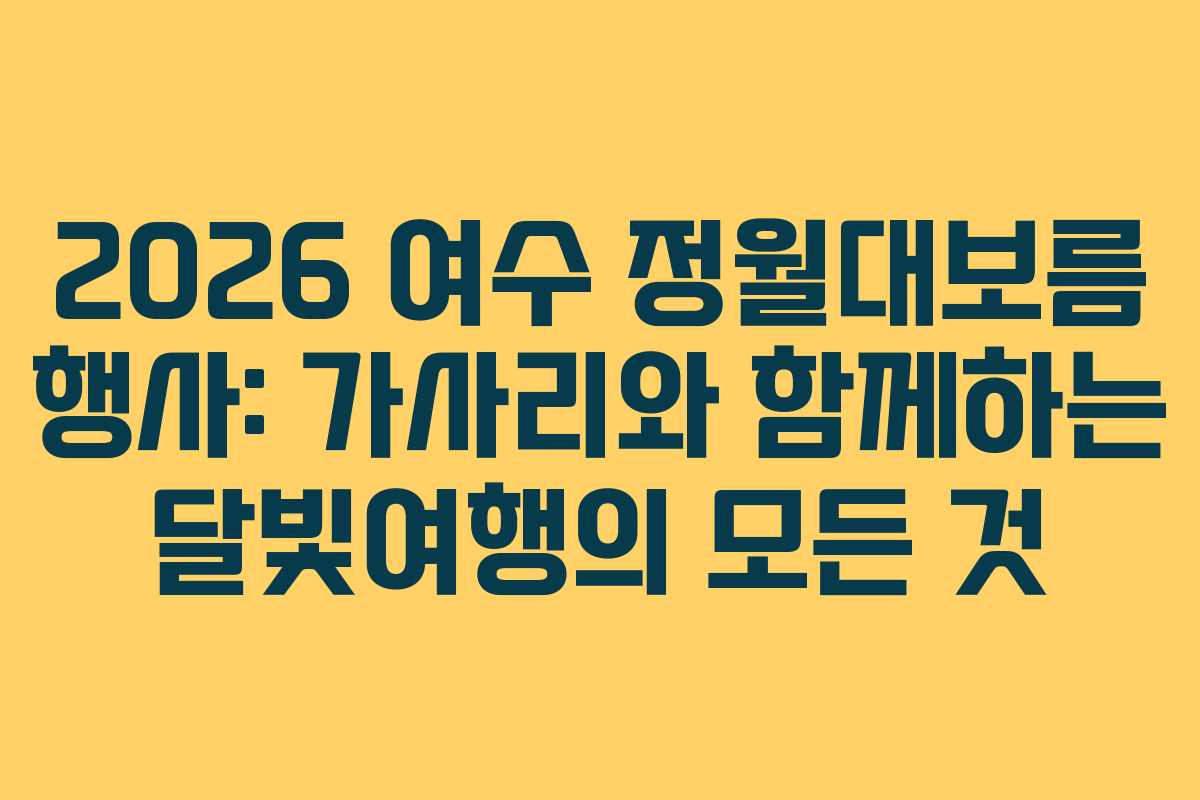 2026년 여수시에서 개최되는 정월대보름 행사는 지역 주민과 관광객에게 특별한 경험을 제공합니다. 특히, ‘가사리와 함께하는 달빛여행’은 전통문화와 공동체의 의미를 되새기는 기회로, 많은 이들이 기대하고 있습니다. 이번 행사에서는 다양한 프로그램과 함께 전통의 아름다움을 만끽할 수 있습니다.