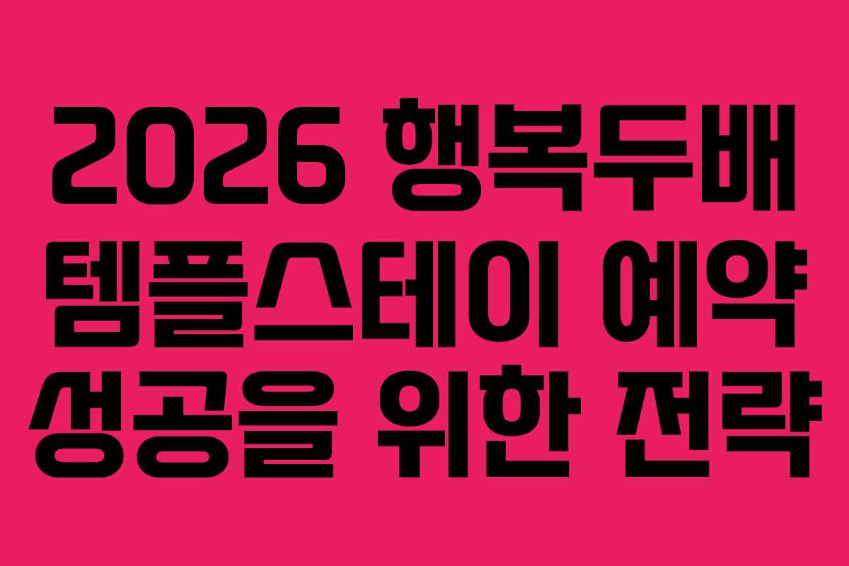 2026 행복두배 템플스테이 예약 성공을 위한 전략