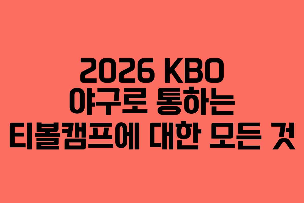 - 🤔 2026 KBO 야구로 통하는 티볼캠프와 관련하여 진짜 궁금한 것들 (FAQ)