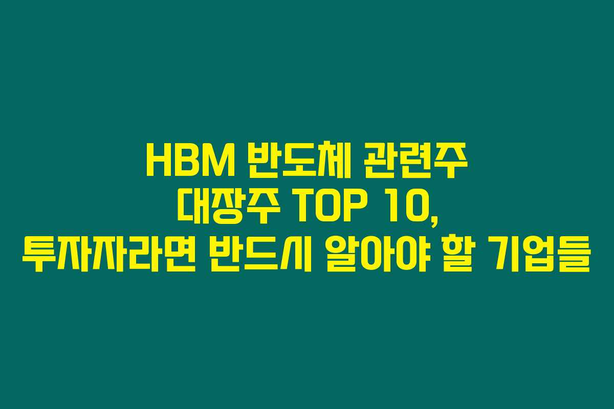 최근 HBM 반도체에 대한 관심이 높아지고 있답니다. HBM은 인공지능 및 머신러닝 등에서 빠르게 사용되고 있기 때문에 기술력을 갖춘 기업들이 투자자들 사이에서 주목받고 있어요. 만약 HBM 반도체 관련주에 관심이 있다면 아래 내용을 반드시 확인해보세요.