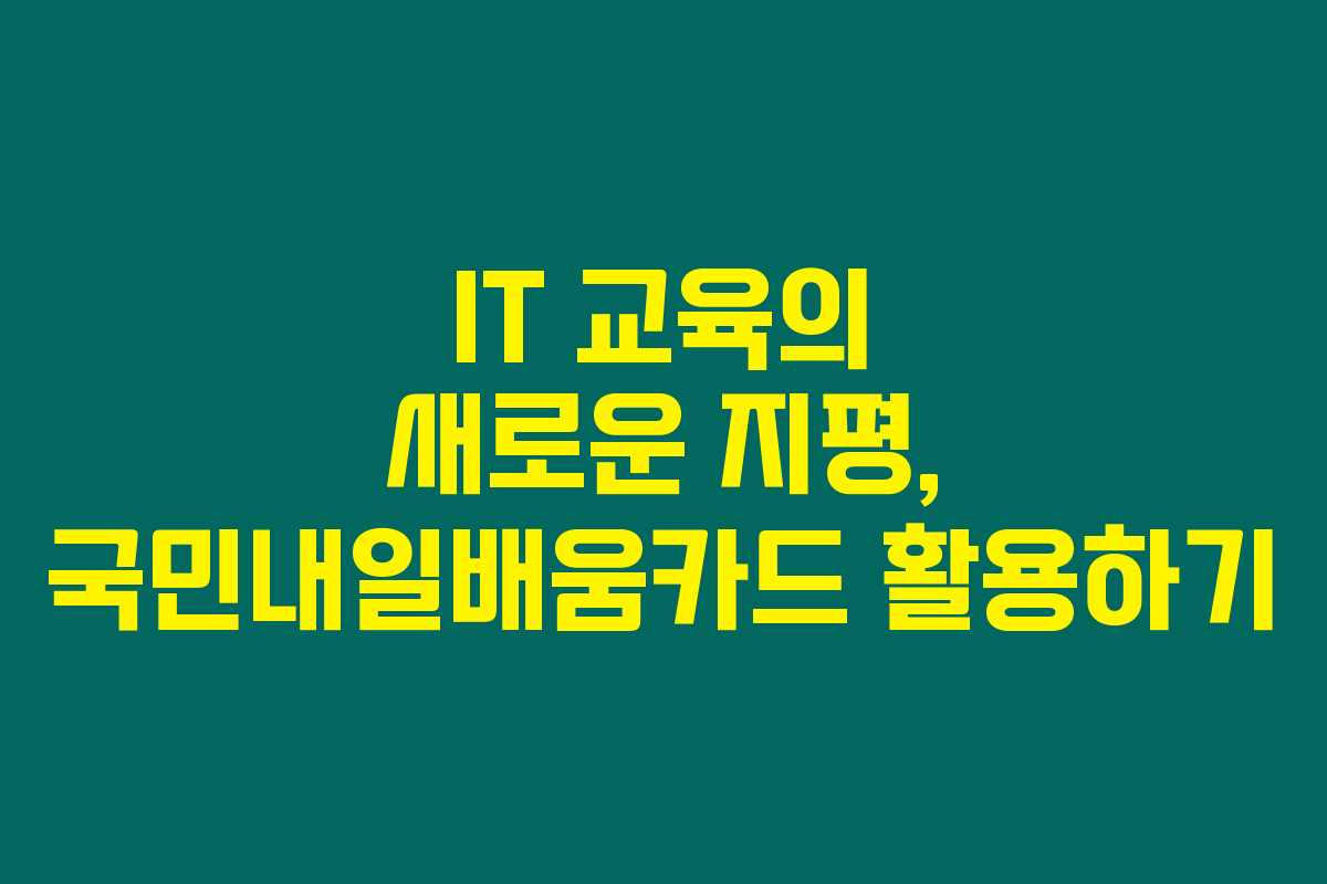 제가 직접 체크해본 바로는, IT 교육에 대한 관심이 매우 높아지고 있으며, 특히 국민내일배움카드를 통해 제공되는 국비 지원 프로그램은 매우 유익한 기회라고 할 수 있습니다. 이 글을 통해 국민내일배움카드의 혜택과 IT 교육의 필요성에 대해 자세히 알아보도록 하겠습니다.