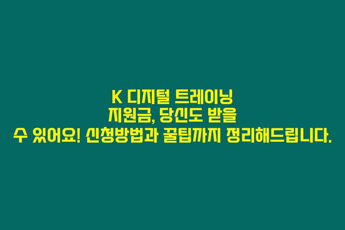 K 디지털 트레이닝 지원금, 내일배움카드, 구직지원 정보, 자격조건, 지원금 지급일, 그리고 각종 후기까지 모두 놓치지 말고 확인하여 유익한 정보를 챙기세요!