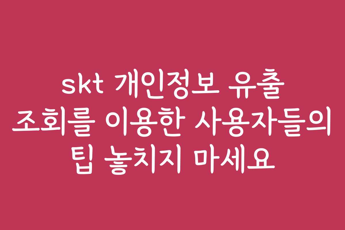 SKT 개인정보 유출 조회를 이용한 사용자들을 위한 필수 팁을 놓치지 마세요!