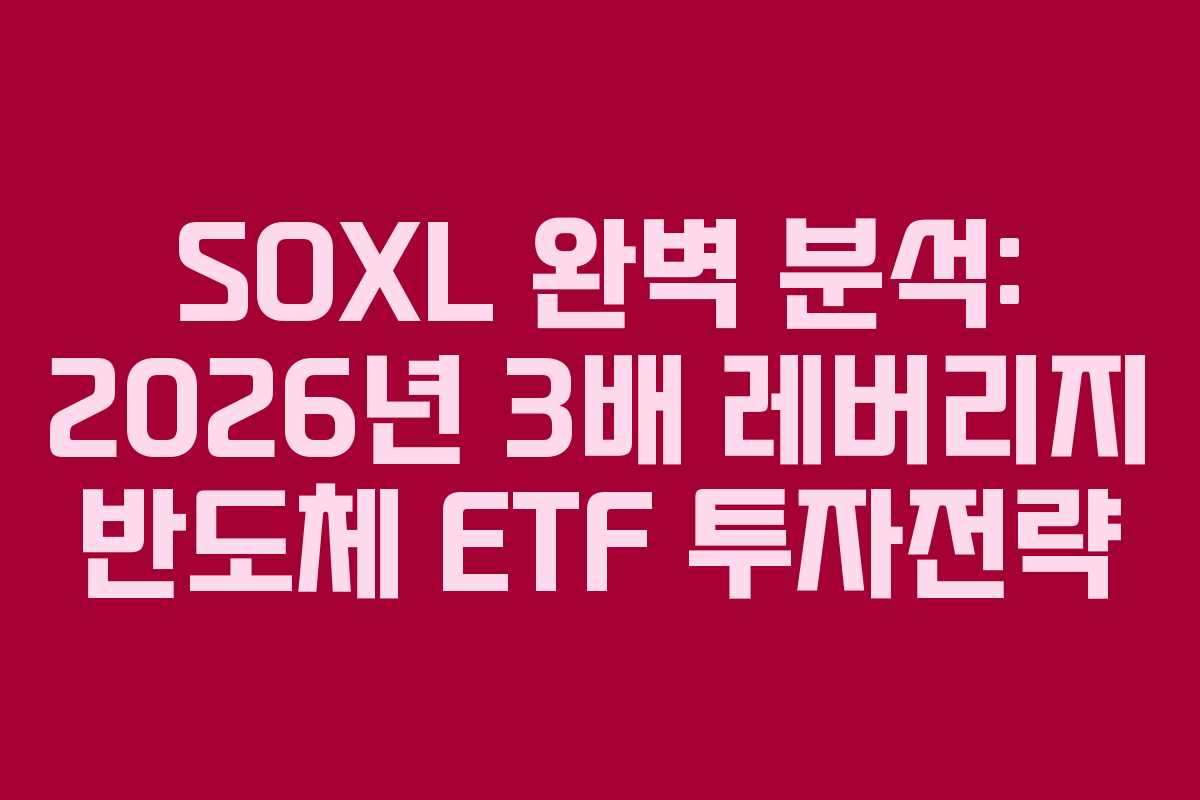 SOXL은 공격적인 투자자들에게 주목받는 ETF로, 2026년 반도체 시장에서의 기회를 활용할 수 있는 전략을 제시합니다. 이 글에서는 SOXL의 특성과 최근 성과, 구성 종목, 배당 내역 및 향후 전망을 상세히 분석합니다. 반도체 시장의 동향을 이해하고, 성공적인 투자 전략을 세우기 위한 유용한 정보를 제공합니다.